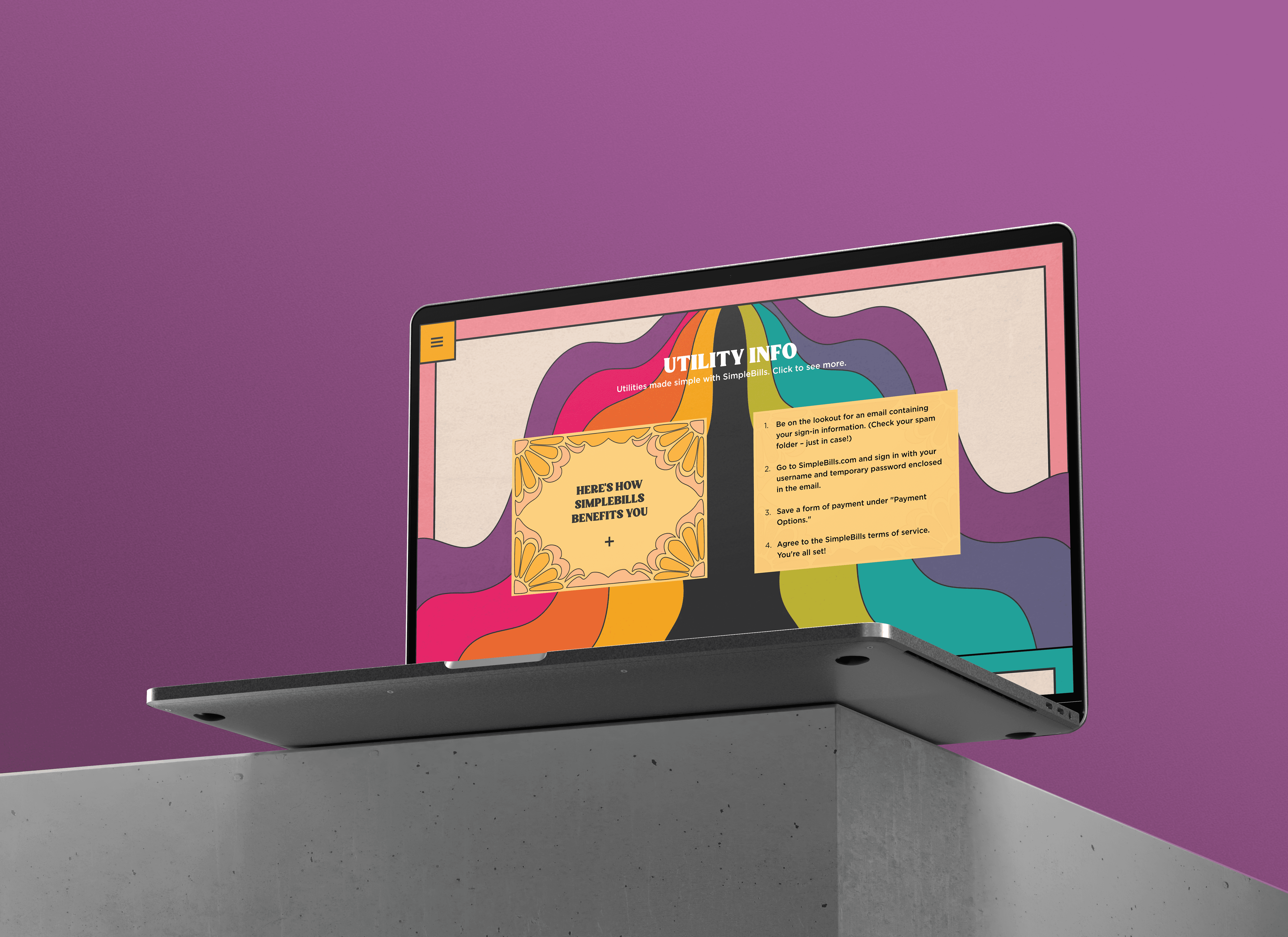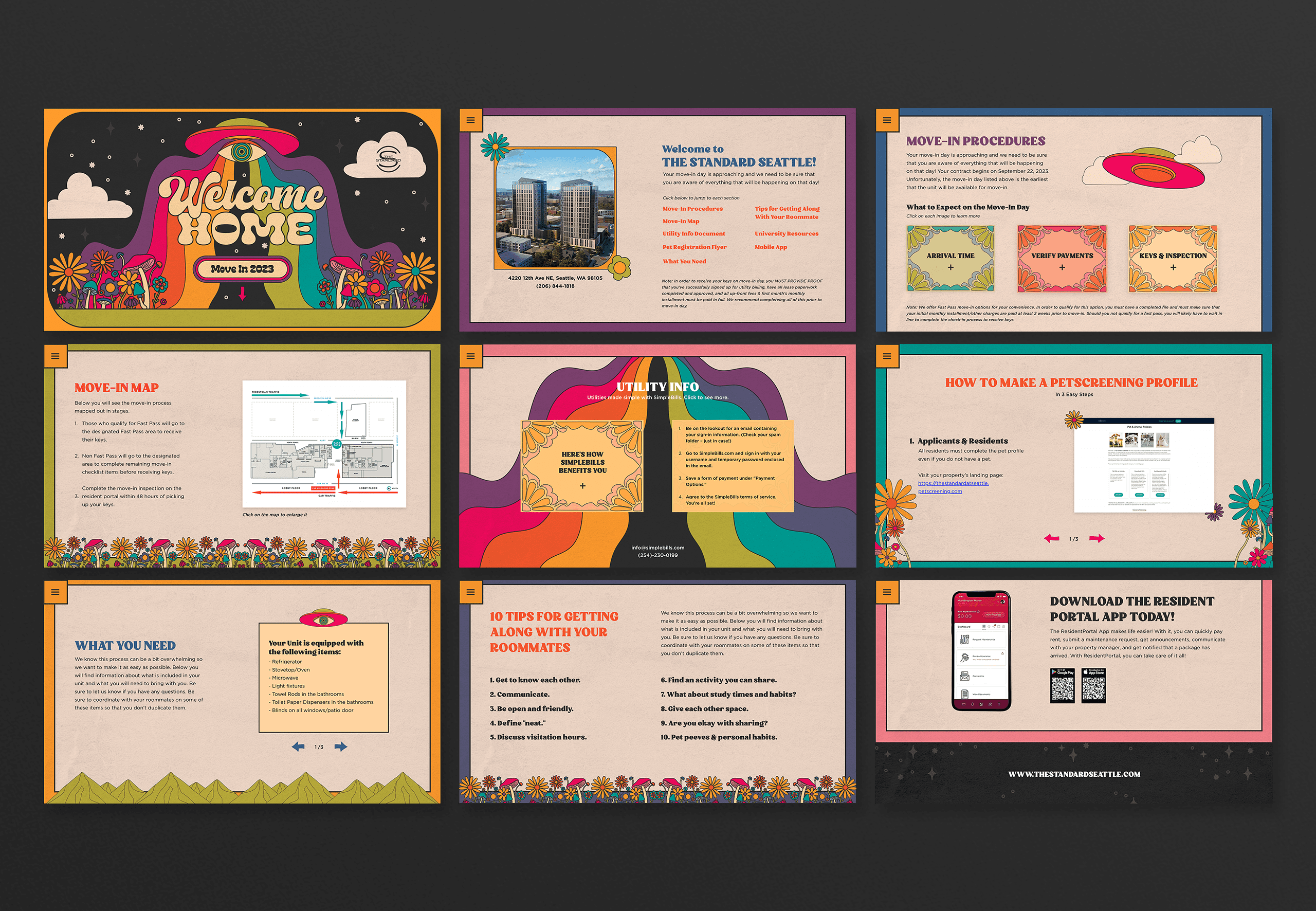The concept of a one-pager containing all the essential information tenants need is not new; however, Landmark reimagines it each year with a unique theme. In 2023, the theme was psychedelic funk—designed to be not only visually fun, but also engaging and easily accessible for tenants as they prepared for their move-in date.